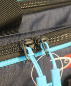 Capacidad: compartimento principal de carga superior + bolsillo frontal XL con panel de red elástica + bolsillo de tapa para pinza con acceso rápido. Dos bolsillos laterales con cierre con panel de red elástica.