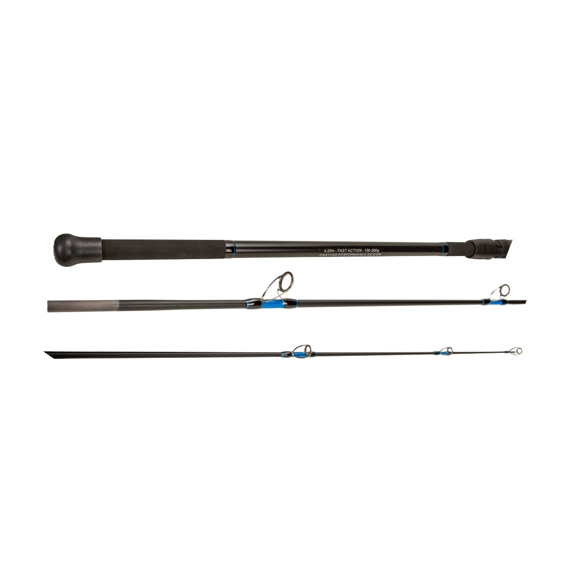 Esta caña es adaptable a cualquier tipo de pesca. Puede usarse para pesca variada de mar, río o muelle. Ideal para lanzar lejos. 100% grafito, con pasahilos y puntero de óxido de aluminio. Pasahilos antibosal tipo Kway. Portarrel regulable en altura. 3 tramos, fácil para transportar, superliviana. Plomo 100-200 gr. Refuerzo metálico en los enchufes. Medida cerrada: 1,50 mts. Recomendamos usar plomos hasta 200 gr. Pasahilos aptos 8 + 1 puntero, compatibles tanto con multifilamento como con nylon.