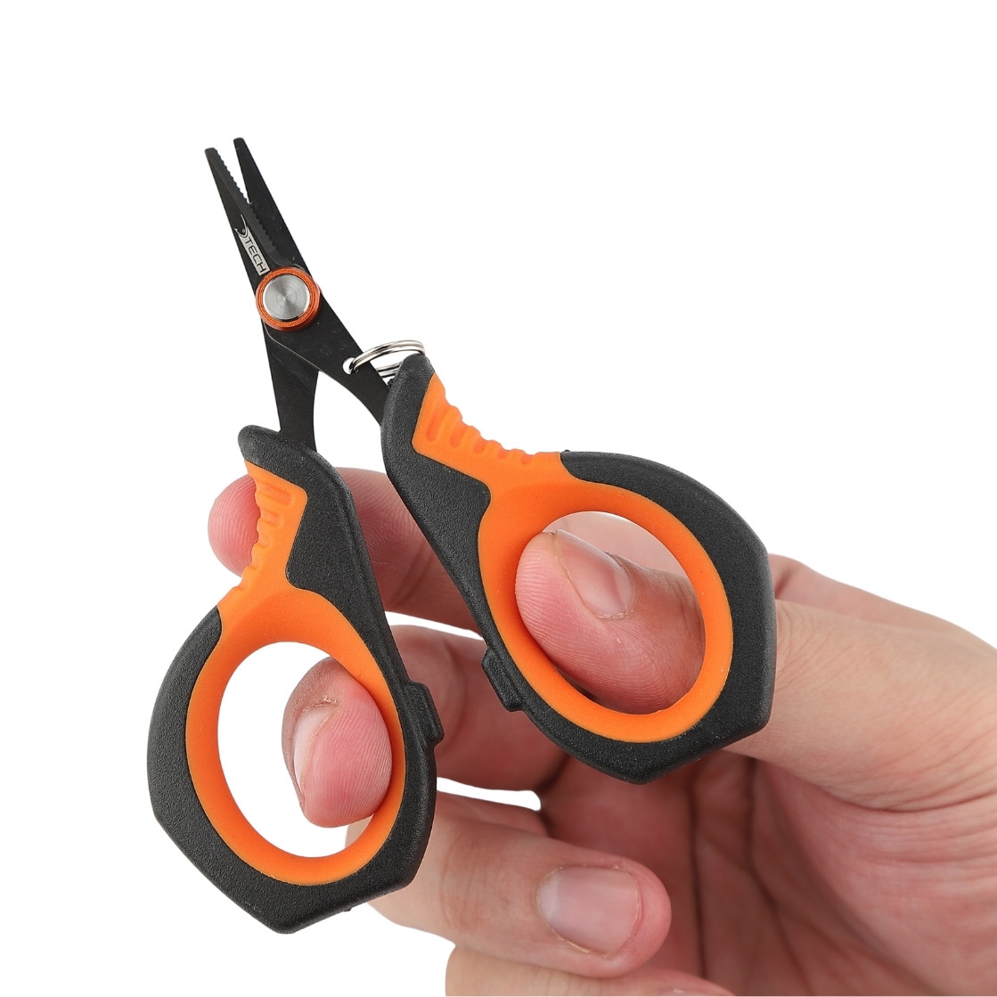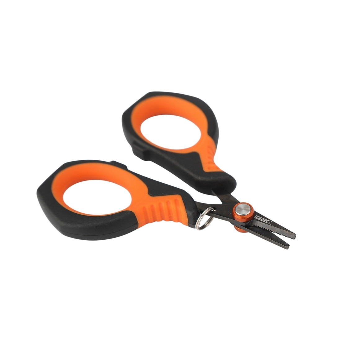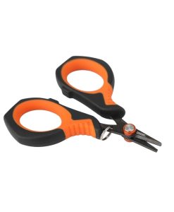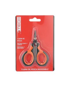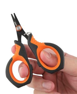 Compacta y práctica, esta tijera está diseñada especialmente para cortar líneas y realizar ajustes rápidos durante la pesca. Sus hojas de acero inoxidable garantizan durabilidad y resistencia a la corrosión. El mango ergonómico con recubrimiento antideslizante en color naranja y negro brinda un agarre seguro y cómodo. Su tamaño reducido la convierte en una herramienta fácil de transportar y fundamental en cualquier caja de pesca.
