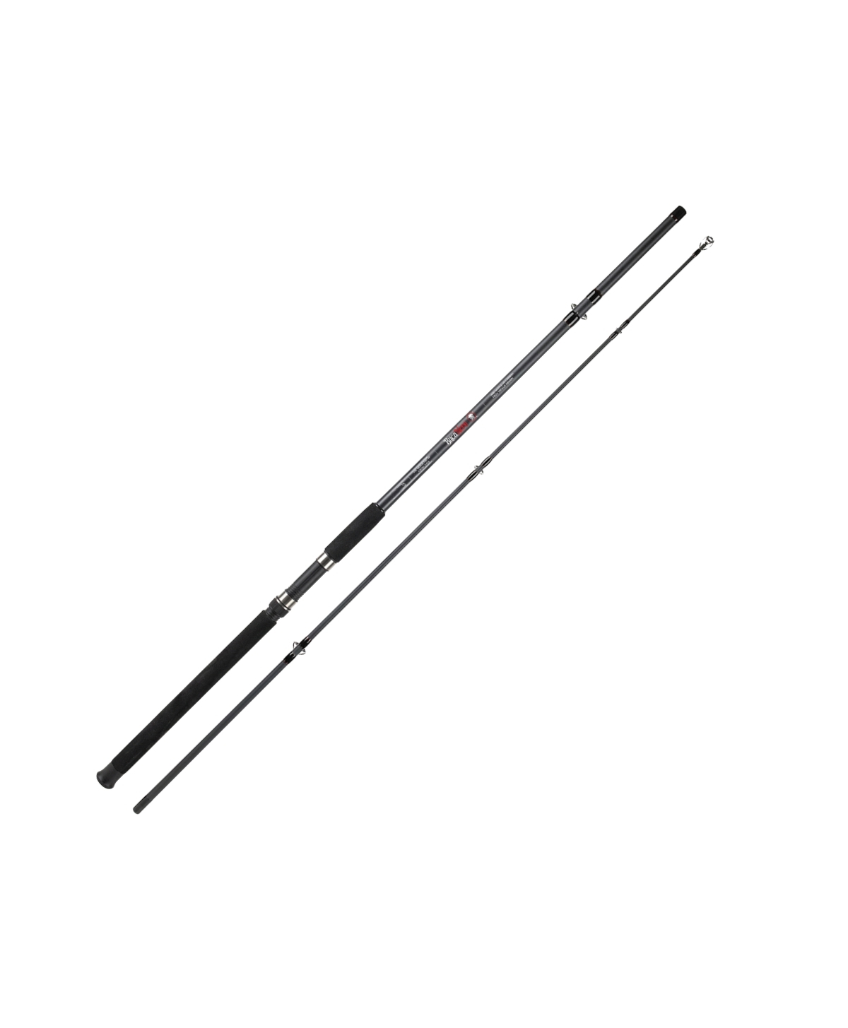La Bucanero es una caña de fibra de vidrio diseñada para la variada en río o mar. Disponible en 2,40, 2,70 y 3 metros (15-30 lb), combina resistencia y sensibilidad en un diseño de dos tramos muy práctico. Gracias a su marcada conicidad, desarrolla una gran potencia de lance y clavada manteniendo un peso contenido, lo que la hace ideal para pescar desde costa o muelle. Su estética en gris opaco le aporta una sobriedad elegante que refleja su calidad y robustez.